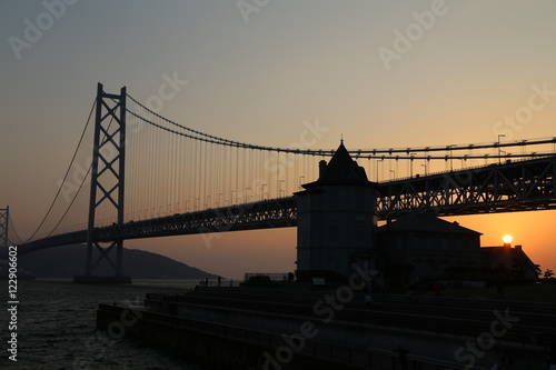 © narautsu, Obraz premium 明石海峡大橋と夕日