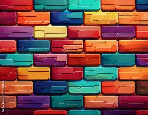 © Matuna, Obraz premium ブロック レンガ タイル カラフル 壁紙 背景