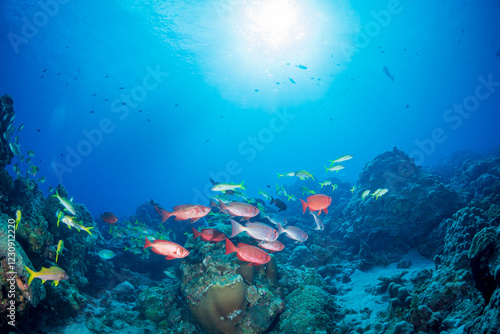 © shota, Naklejka premium ホウセキキントキとアカヒメジの群れ 小笠原