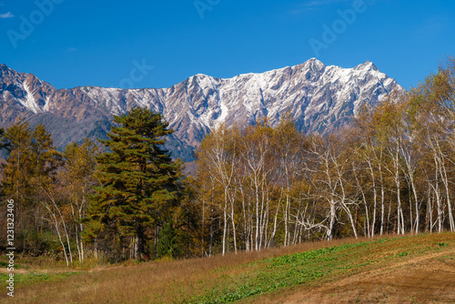 © Snoopy walk, Obraz premium 鹿島槍ヶ岳と白樺