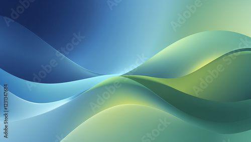 © arie, Obraz premium 抽象的なティールグリーンとブルーの渦巻く波、グラデーション背景