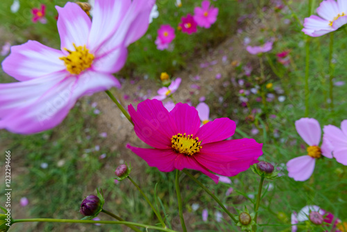 © Kazutaka, Fototapeta premium 風に揺れるピンクのコスモス