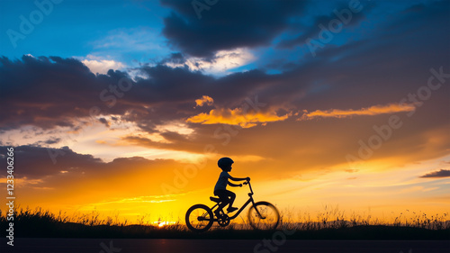 © bephoto, Obraz premium 夕暮れに駆ける自転車 – 未来へ続く青春の軌跡