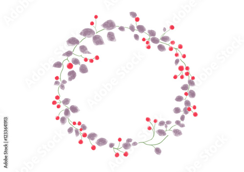 Obraz premium 赤い実と紫の葉のコントラストがきいた円型 フレーム