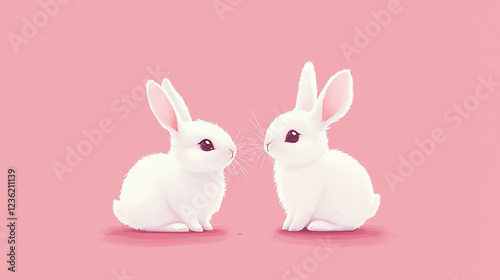 Fototapeta premium シンプルで可愛い2匹の白うさぎの優しいイラスト