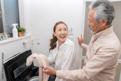 © miya227, Obraz premium 洗濯をするシニアカップル