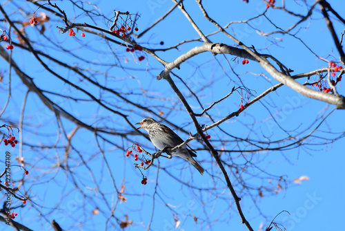 Fototapeta premium ナナカマドの実を食べるヒヨドリ