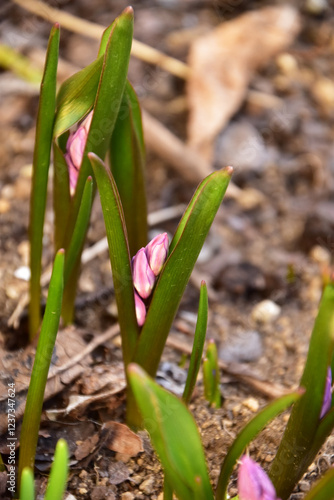Fototapeta premium ピンクのチオノドクサのつぼみ