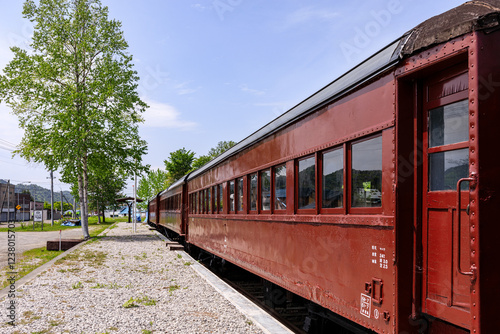 © Shigeyasu Urayama, Fototapeta premium 北海道夕張市、大夕張鉄道南大夕張駅跡に展示されている客車【5月】