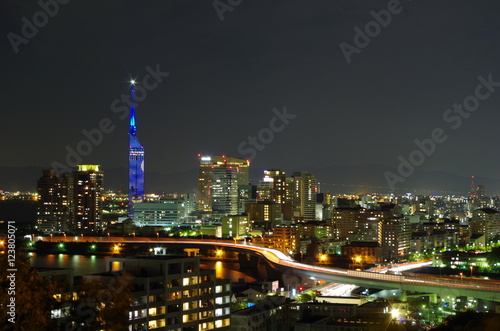 © fy2907fw, Naklejka premium シーサイド百道夜景 愛宕神社