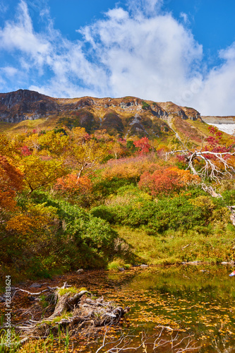 Obraz premium 大雪高原温泉 沼めぐりコースの紅葉