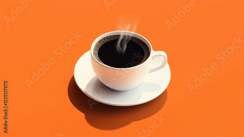 © bephoto, Obraz premium オレンジ背景のコーヒーカップのミニマルイラスト