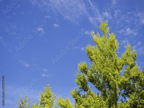 Obraz premium 秋空の下、銀杏の樹