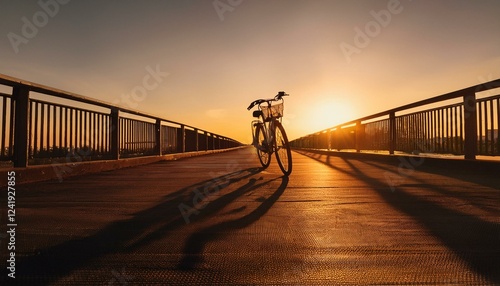 Obraz premium 고요한 다리 위, 자전거 한 대가 세워진 실루엣