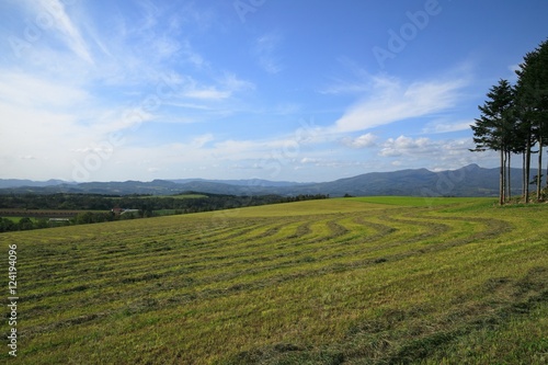 © hoshi, Fototapeta premium 収穫後の牧草地と防風林