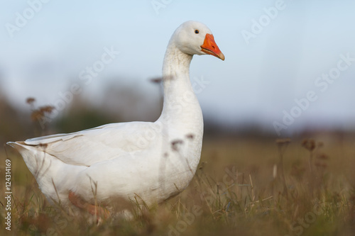 © vasilaleksandrov, Fototapeta premium Большие белые гуси на лугу
