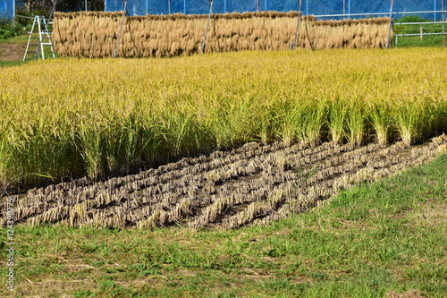 © mayudama, Fototapeta premium 途中まで刈り取った田んぼ