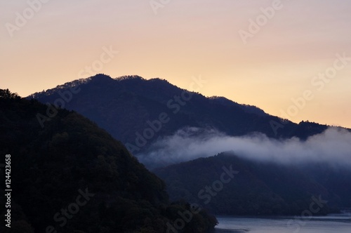 Obraz premium 朝焼けの宮ヶ瀬湖