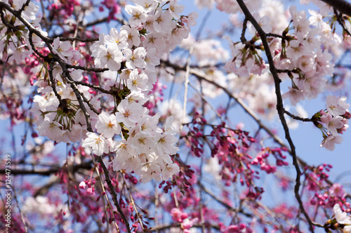 Obraz premium 垂れ桜と染井吉野