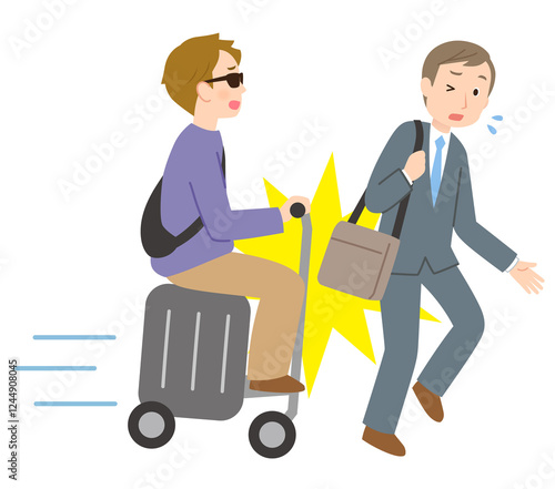 © koti, Obraz premium 電動スーツケースに乗る人が、歩行者に衝突 事故