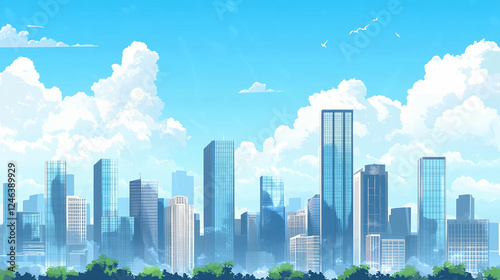 Fototapeta premium 青空と近代的な都市風景イラスト