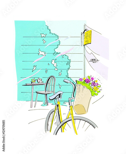 © imagefuji, Fototapeta premium カフェと自転車 イメージイラスト