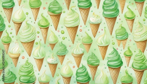 © Bambi and Sunny, Obraz premium かわいいソフトクリームのイラスト(緑)