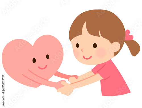 Fototapeta premium ハートと手をつなぐ女の子 子どものこころ メンタルケア