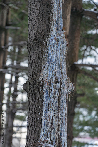Fototapeta premium 겨울철 나무에 남은 하얀 송진 흔적