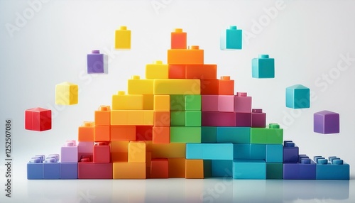 © EASY103, Obraz premium 白い背景に、カラフルな積み木