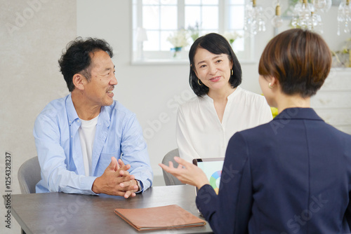 Fototapeta premium ビジネスウーマンと話す夫婦