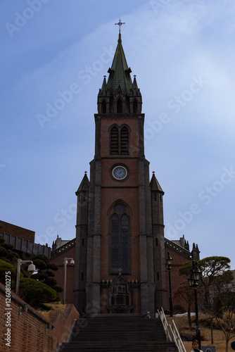 Fototapeta premium 하늘을 향해 솟아있는 명동 성당의 웅장한 모습