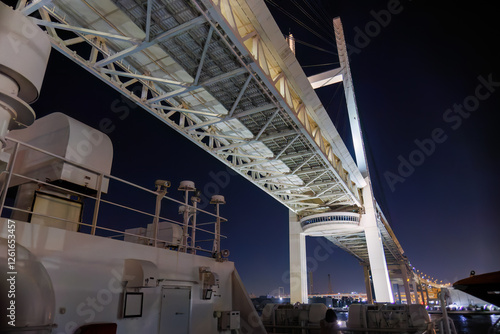 Obraz premium 東京湾から眺める美しい横浜みなとみらいの夜景。東海汽船東京湾〜伊豆諸島航路のさるびあ丸船上にて。 2024