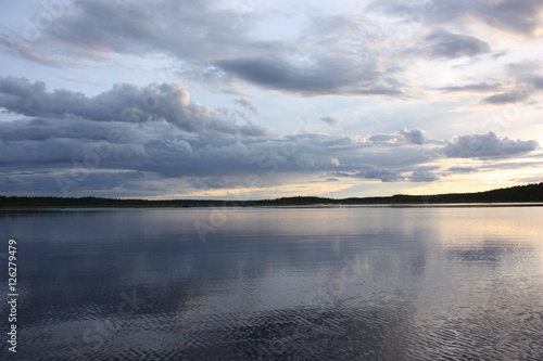 Fototapeta premium Вечерний закат над озером.