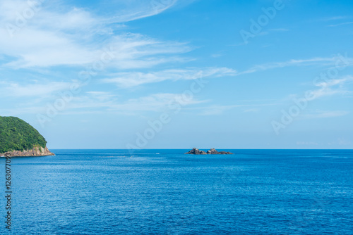 Obraz premium 三重県熊野市・鬼ヶ城から望む青い海と空