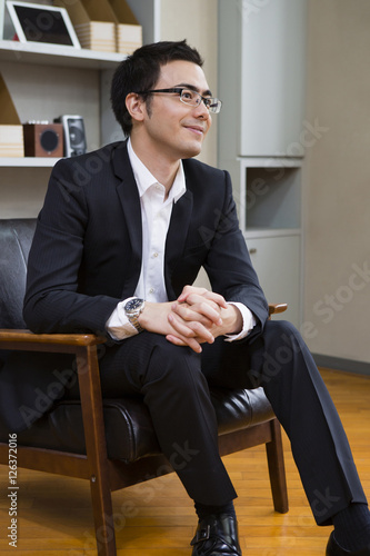 © milatas, Fototapeta premium 座りながら話を聞くビジネスマン