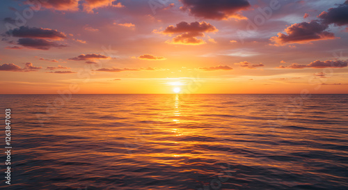 © egavirgian art, Obraz premium 海の地平線に広がる幻想的な黄金色の夕焼け