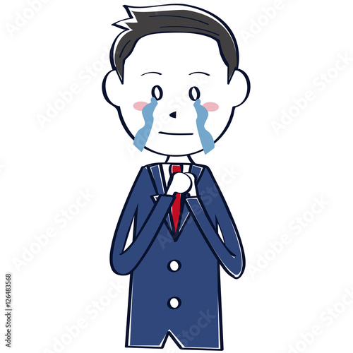 Obraz premium 紺色のブレザーの学生 男性 黒髪 泣く