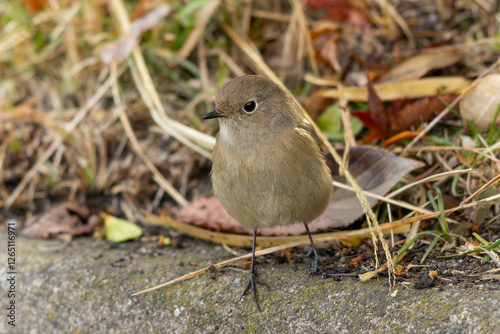 © yukikazechihayate, Obraz premium コンクリートの上に立つ雌のジョウビタキ