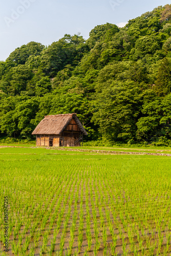 Obraz premium 世界遺産 白川村(白川郷) 6月初夏の花と田園風景
