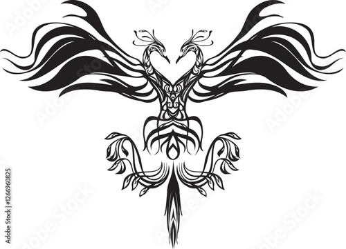 © foolchico, Obraz premium 鳳凰のトライバルアートのクールなイラスト