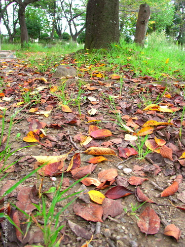 Obraz premium サクラの落ち葉のある公園風景