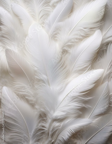 Obraz premium 天使の羽根が舞い降り、ホワイトとパールで清らかなスピリチュアルな空間を表現するデザイン