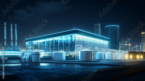 Fototapeta premium 水素燃料電池による発電でライトアップされた未来都市の建物