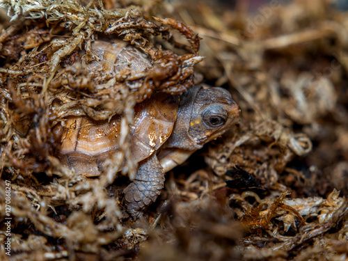 © ichihira, Fototapeta premium 水苔に潜るミツユビハコガメのベビー