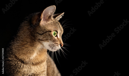 © Marinaks, Obraz premium Шикарная кошка с зелеными глазами на черном фоне