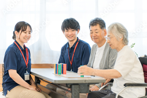 © buritora, Obraz premium 介護施設・リハビリ施設で働く作業療法士の職員とリハビリをするシニア女性