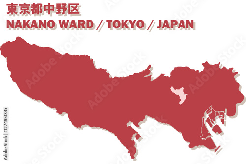© NICONICO, Obraz premium 日本地図-東京都-中野区ベクターイラストマップ