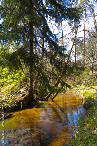 Obraz premium Лесной ручей в соснах
