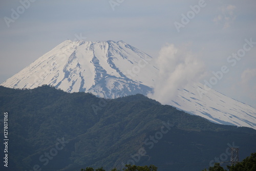 © Jazz Hapi Yuko, Obraz premium 日本の静岡県沼津市の公園からみた富士山の山頂付近、煙が見える